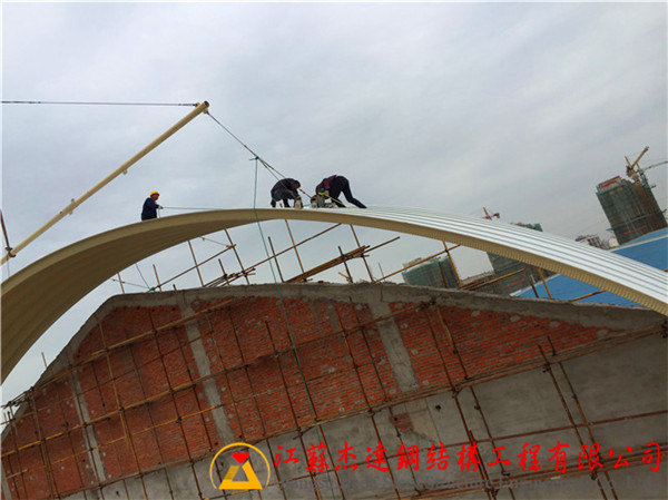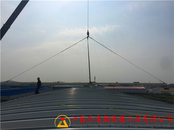 下為江蘇杰達(dá)鋼結(jié)構(gòu)工程有限公司在安徽安天食品集團(tuán)拱形屋頂安裝施工過程中的施工日記。